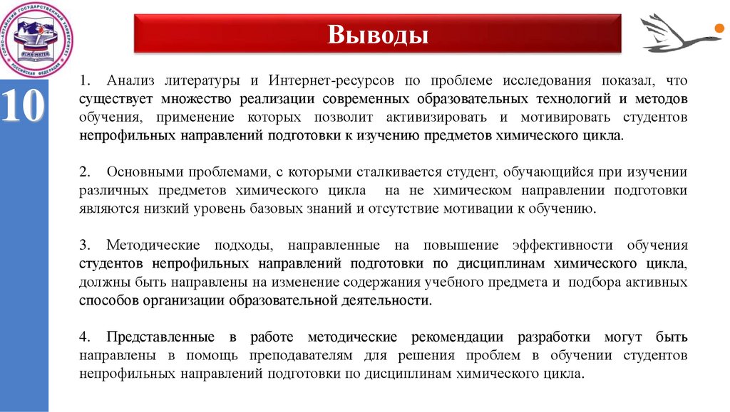 Проблемы химического образования студентовнепрофильных направлений подготовки