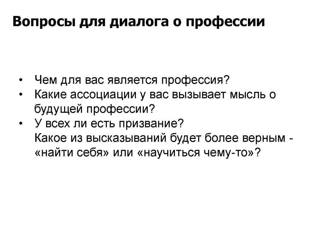 Вопросы для диалога о профессии• Чем для вас является профессия?