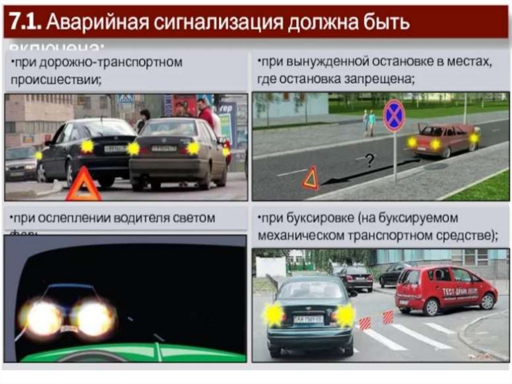 Применение аварийной сигнализации и знака аварийной остановки. Раздел 7