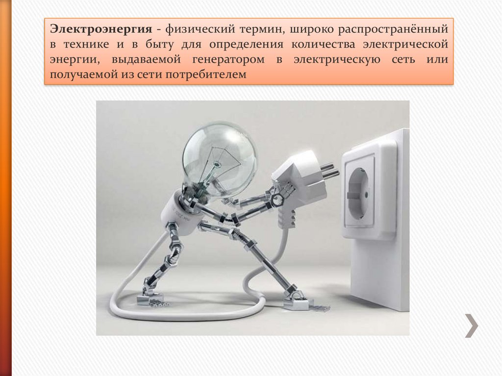 Электроэнергия - физический термин, широко распространённыйв технике и в быту для определения количества электрической