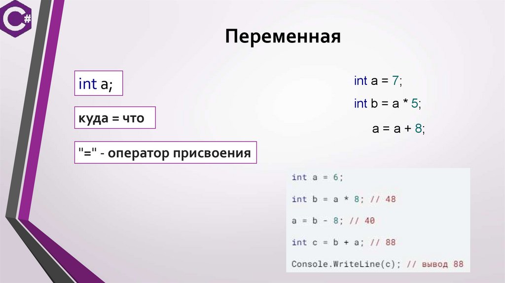 ПеременнаяПеременная - это ячейка памяти определенного типа,