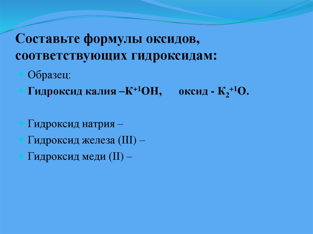 Составьте формулы оксидов,соответствующих гидроксидам: