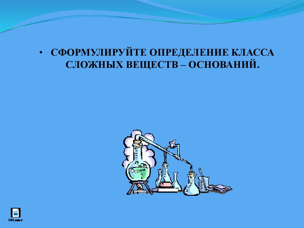 • СФОРМУЛИРУЙТЕ ОПРЕДЕЛЕНИЕ КЛАССАСЛОЖНЫХ ВЕЩЕСТВ – ОСНОВАНИЙ.