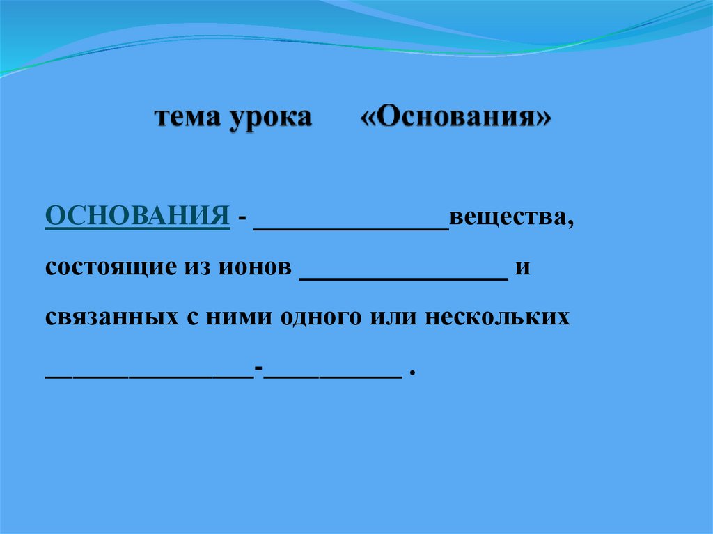 ОСНОВАНИЯ - ______________вещества,состоящие из ионов _______________ и