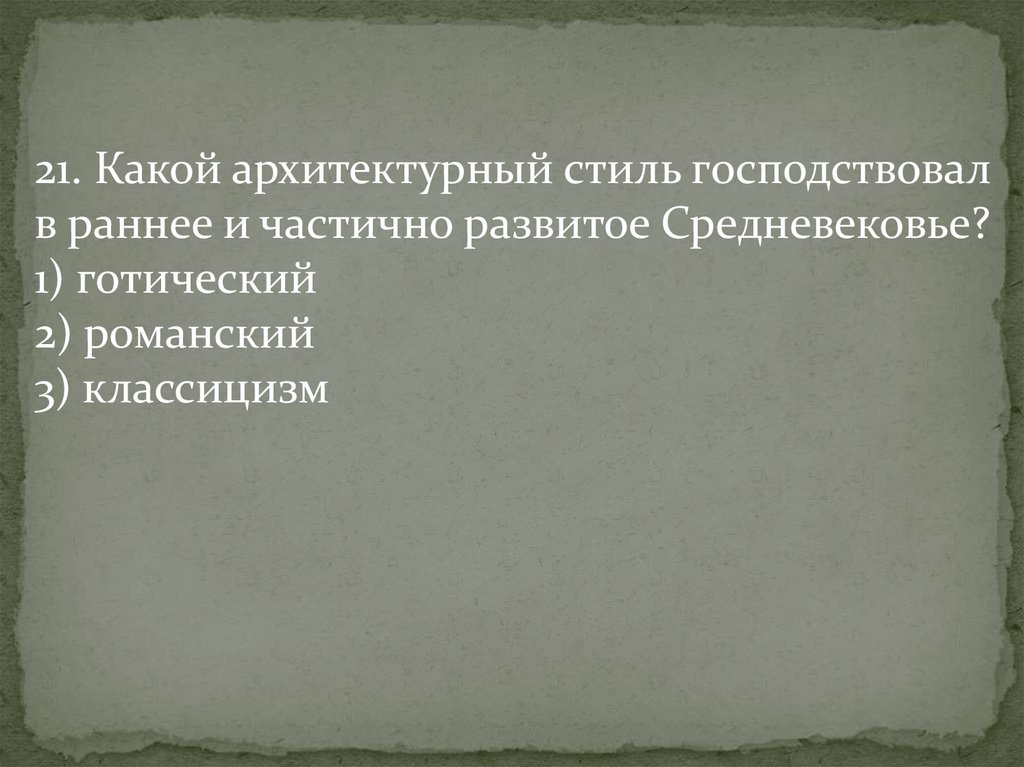 21. Какой архитектурный стиль господствовалв раннее и частично развитое Средневековье?