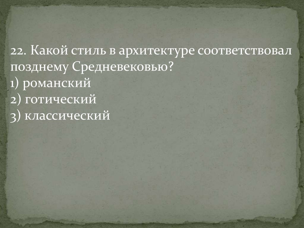 22. Какой стиль в архитектуре соответствовалпозднему Средневековью?