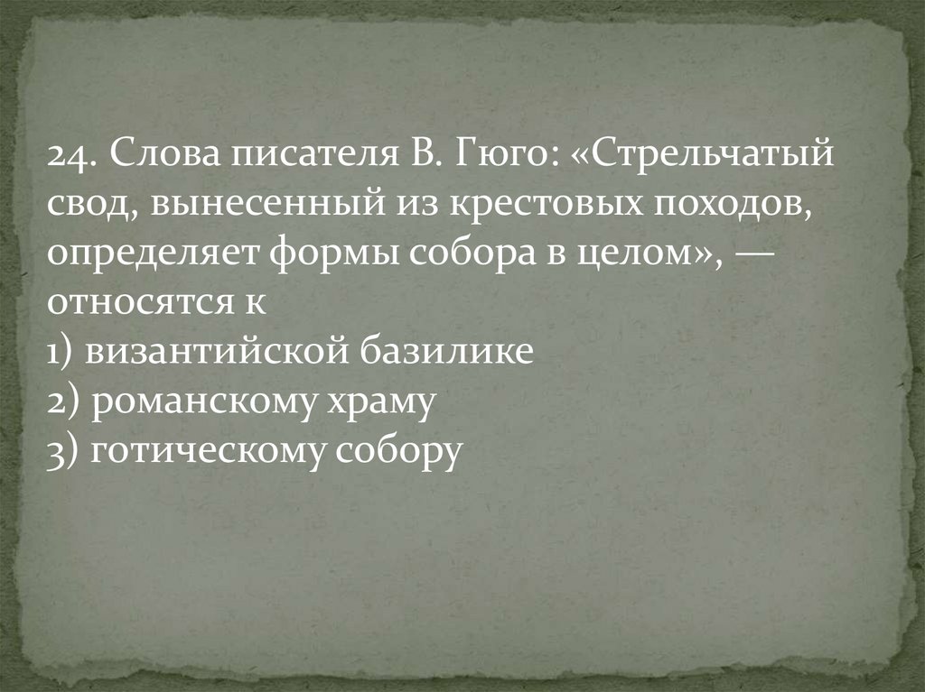 24. Слова писателя В. Гюго: «Стрельчатыйсвод, вынесенный из крестовых походов,
