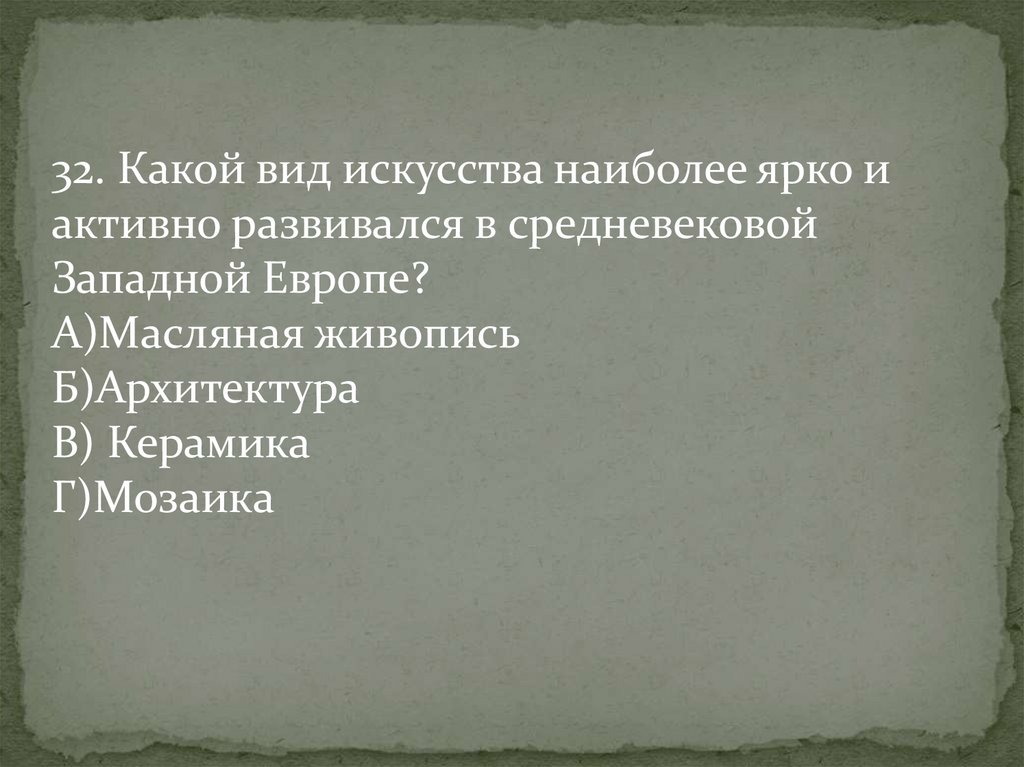 32. Какой вид искусства наиболее ярко иактивно развивался в средневековой