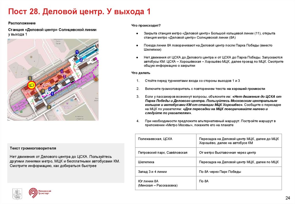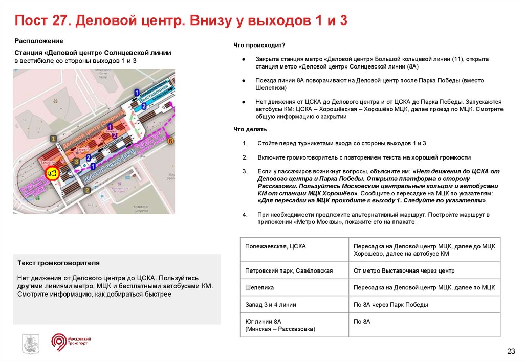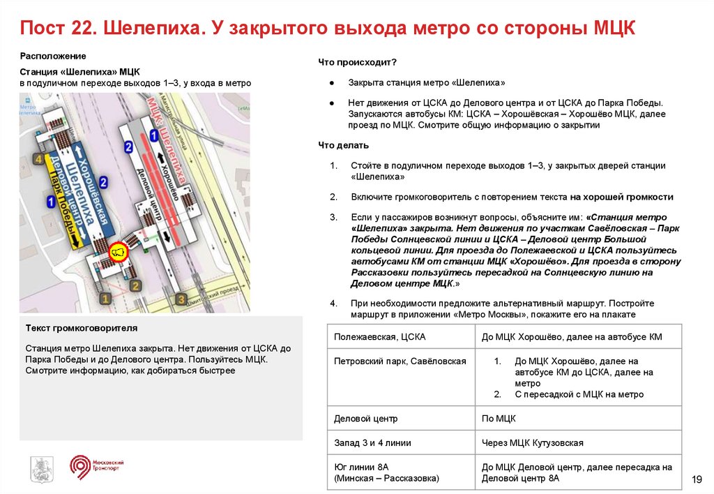 Скрипты действий ЦОМП при закрытии участков. Служба пассажирских сервисов