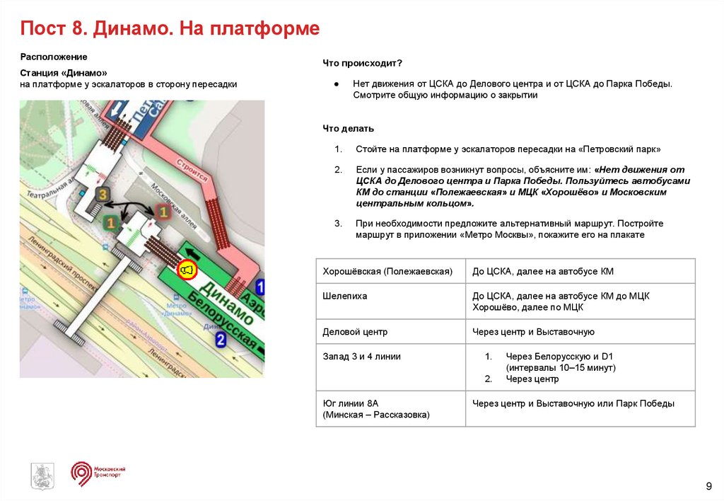 Если у пассажиров возникнут вопросы, объясните им: «Нет движения до ЦСКА от