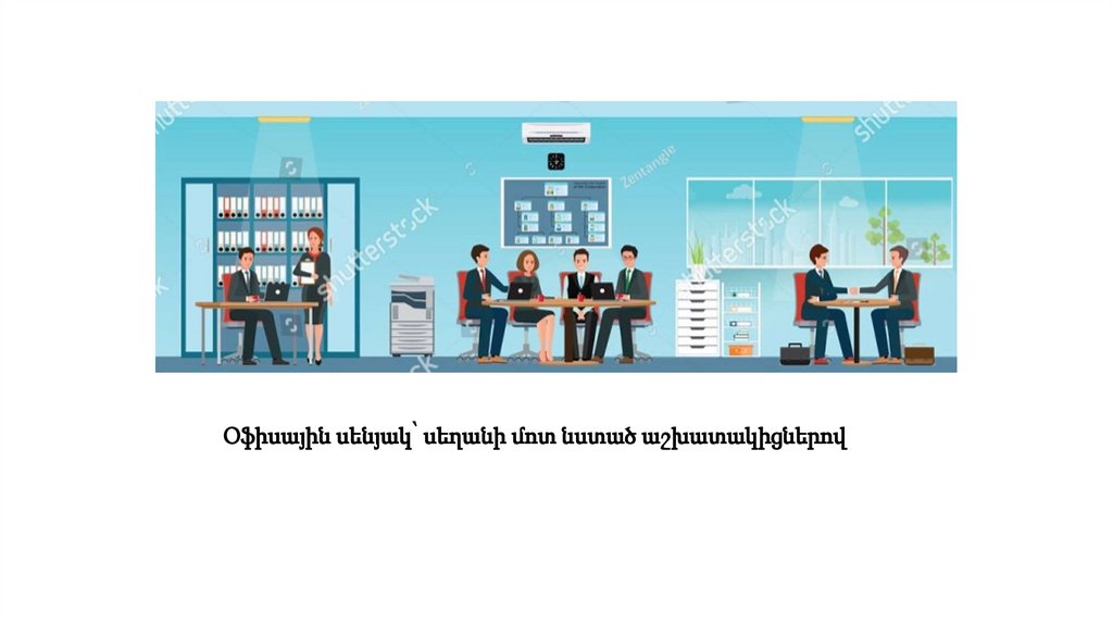 Օֆիսային սենյակ՝ սեղանի մոտ նստած աշխատակիցներով