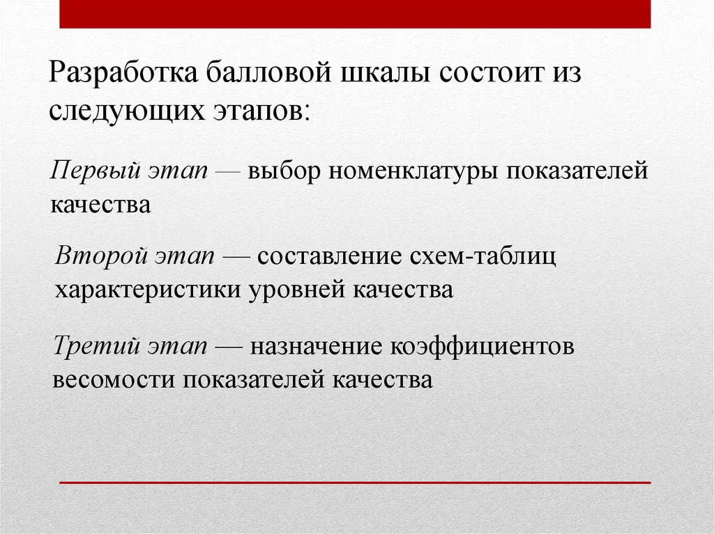 Разработка балловой шкалы состоит изследующих этапов: