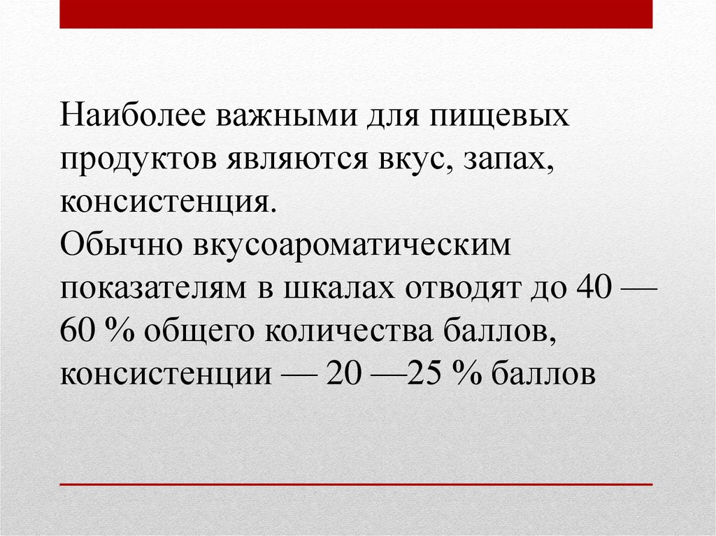 Наиболее важными для пищевыхпродуктов являются вкус, запах,