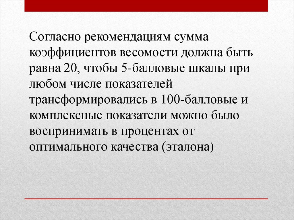 Согласно рекомендациям суммакоэффициентов весомости должна быть