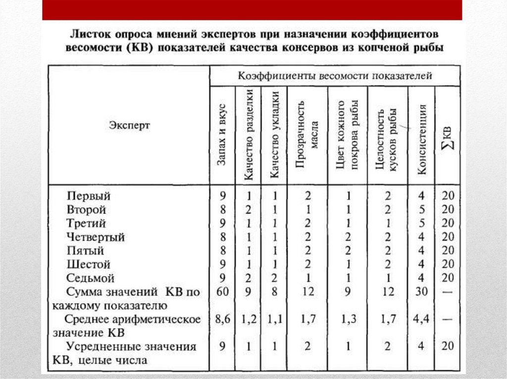 Применение экспертных методов при разработке балловых шкал показателей качества рыбных продуктов