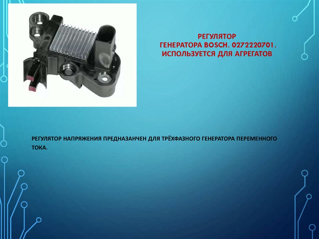 РЕГУЛЯТОР НАПРЯЖЕНИЯ ПРЕДНАЗАНЧЕН ДЛЯ ТРЁХФАЗНОГО ГЕНЕРАТОРА ПЕРЕМЕННОГО