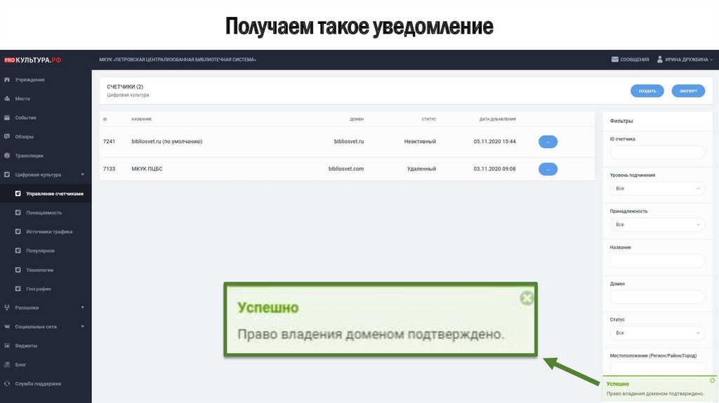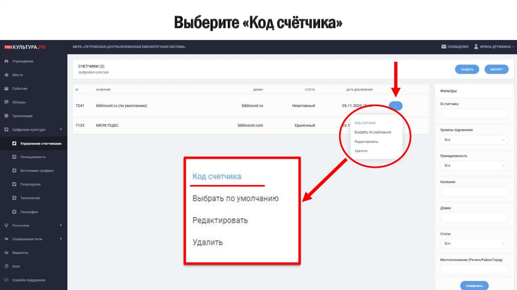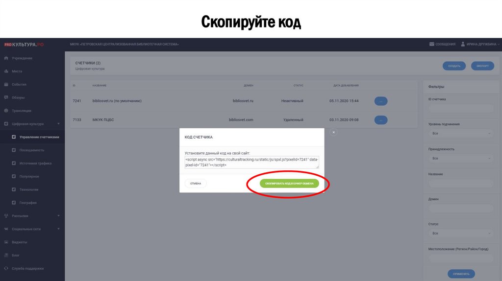 Культура РФ. Установка счётчика КУЛЬТУРА.РФ на сайт МКУК ПЦБС