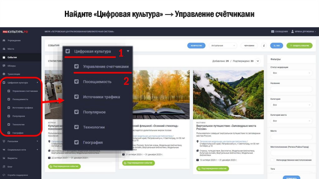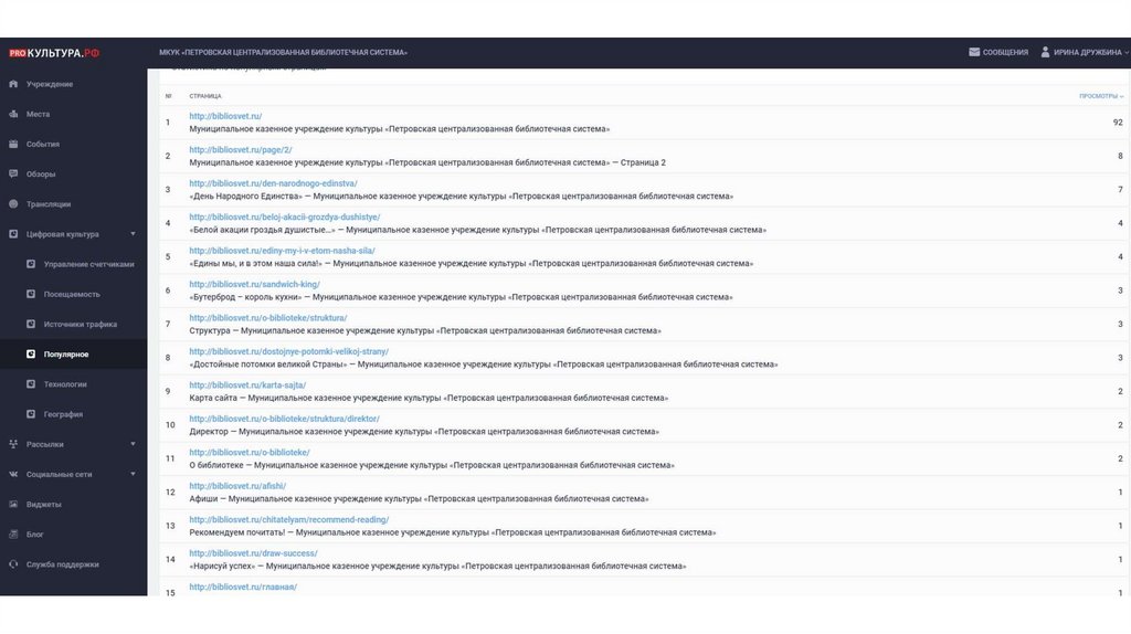 Теперь в других подпунктах меню «Цифроваякультура» доступна подробная статистика