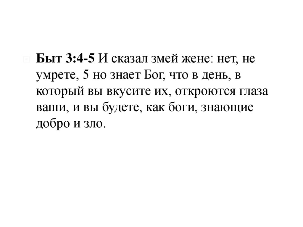 Быт 3:4-5 И сказал змей жене: нет, неумрете, 5 но знает Бог, что в день, в
