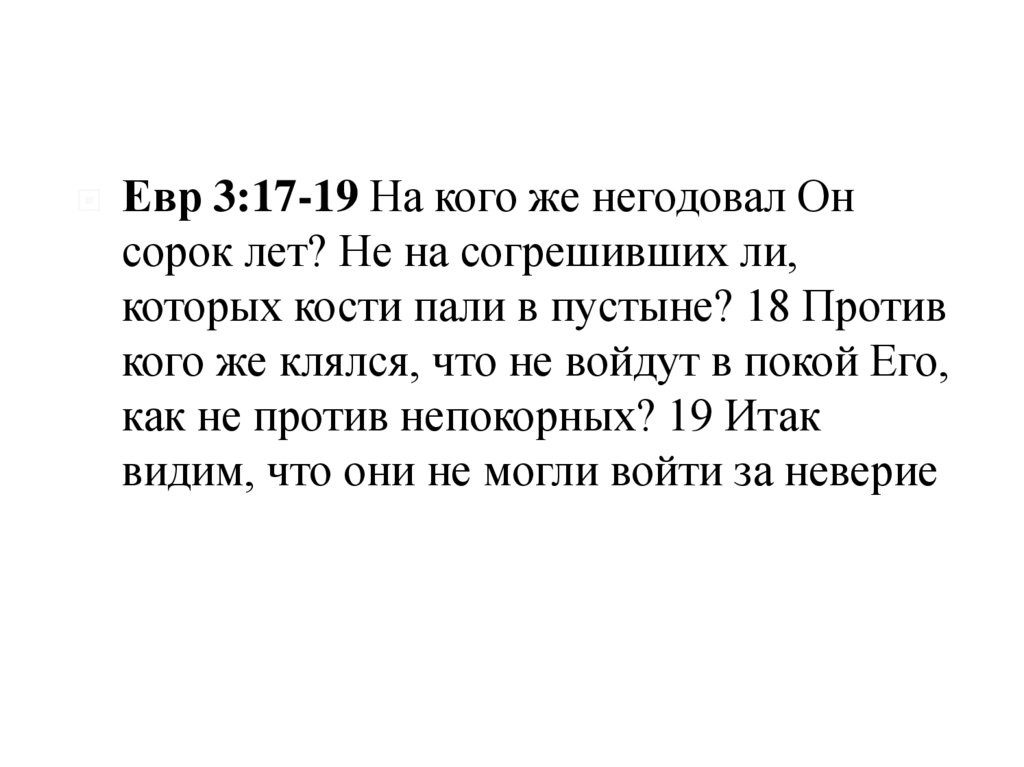 Евр 3:17-19 На кого же негодовал Онсорок лет? Не на согрешивших ли,