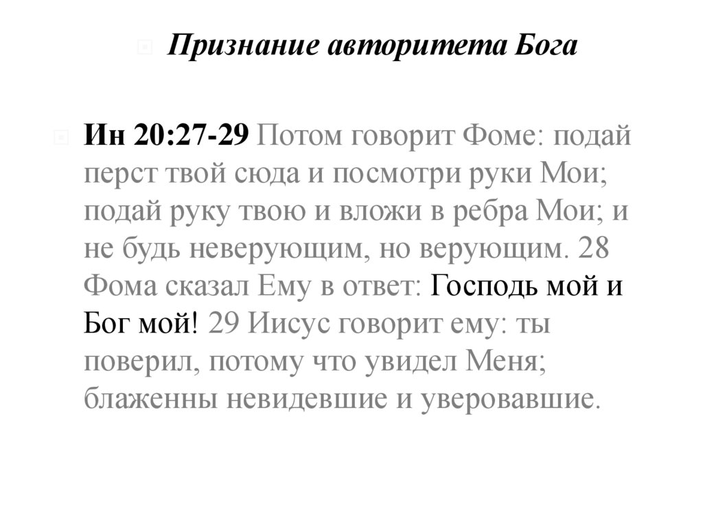 Признание авторитета БогаИн 20:27-29 Потом говорит Фоме: подай