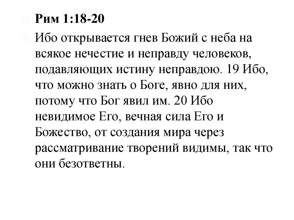 Рим 1:18-20Ибо открывается гнев Божий с неба на
