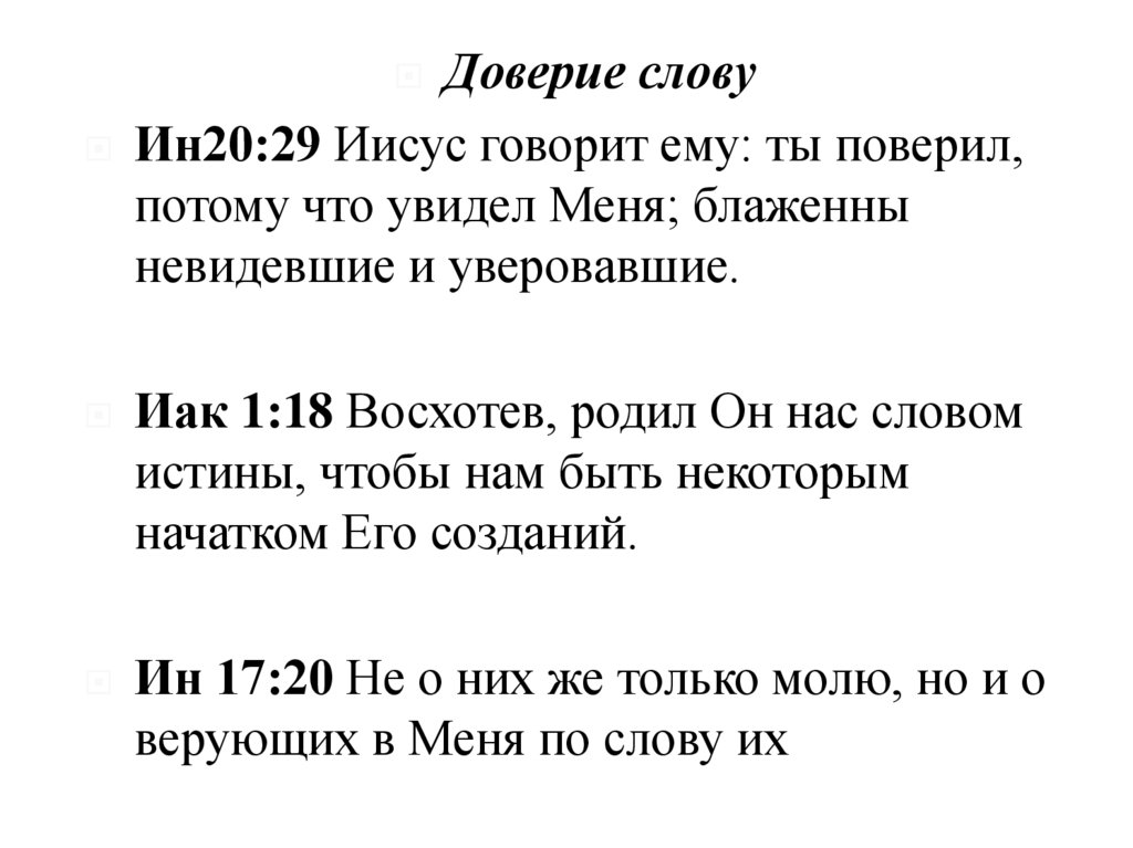 Доверие словуИн20:29 Иисус говорит ему: ты поверил,