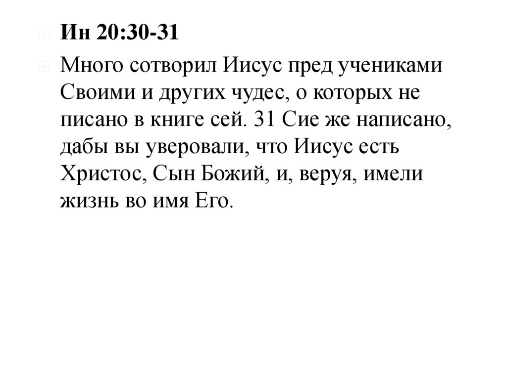 Ин 20:30-31Много сотворил Иисус пред учениками