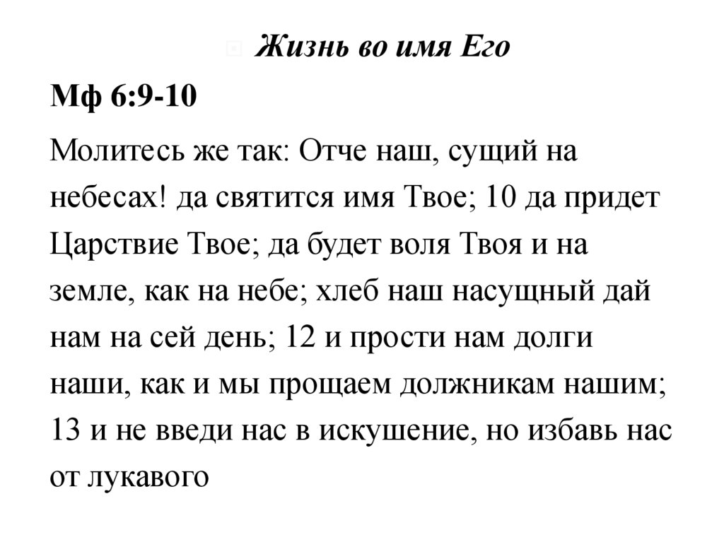 Жизнь во имя ЕгоМф 6:9-10