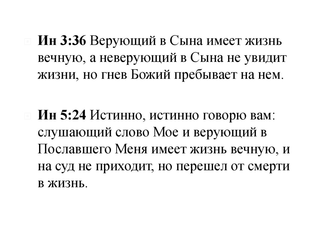 Ин 3:36 Верующий в Сына имеет жизньвечную, а неверующий в Сына не увидит