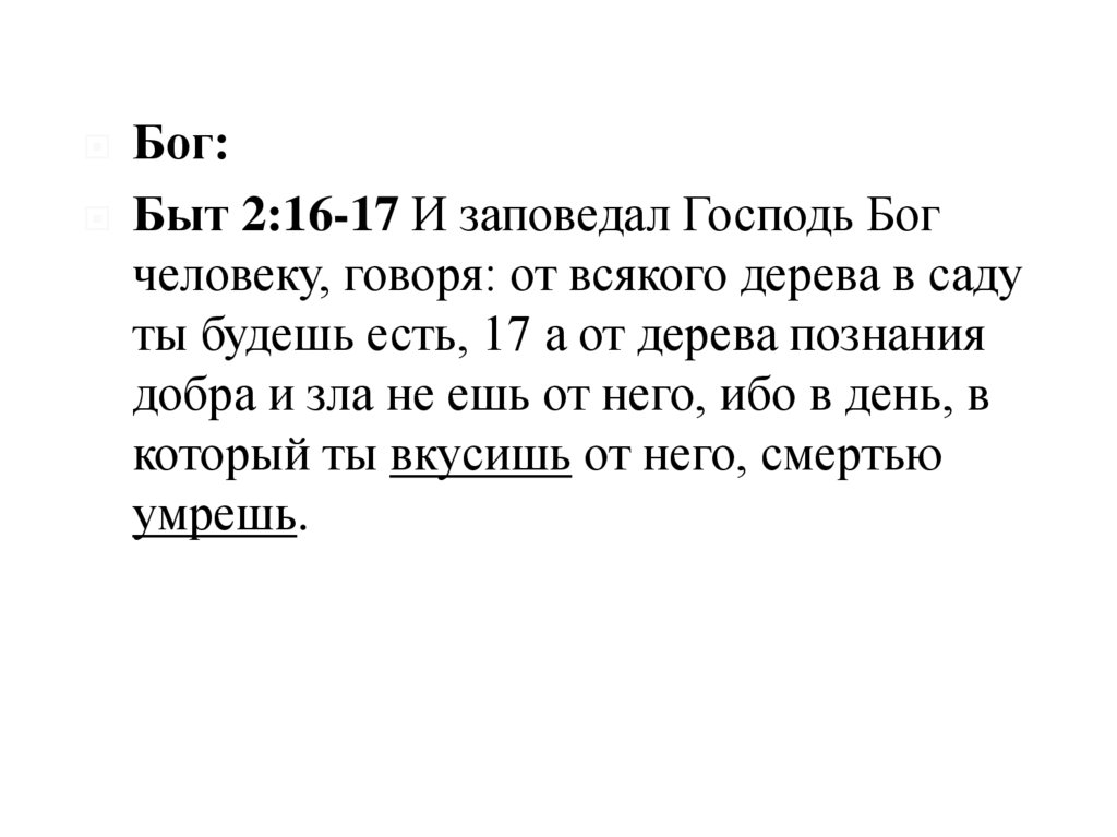 Бог:Быт 2:16-17 И заповедал Господь Бог