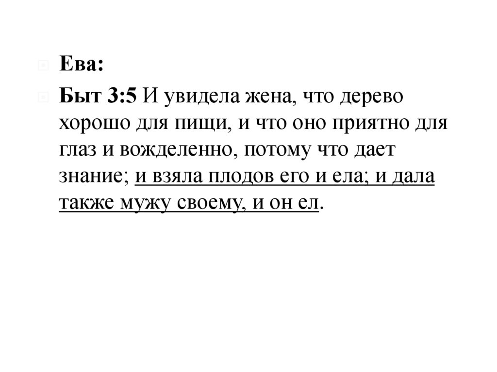 знание; и взяла плодов его и ела; и дала