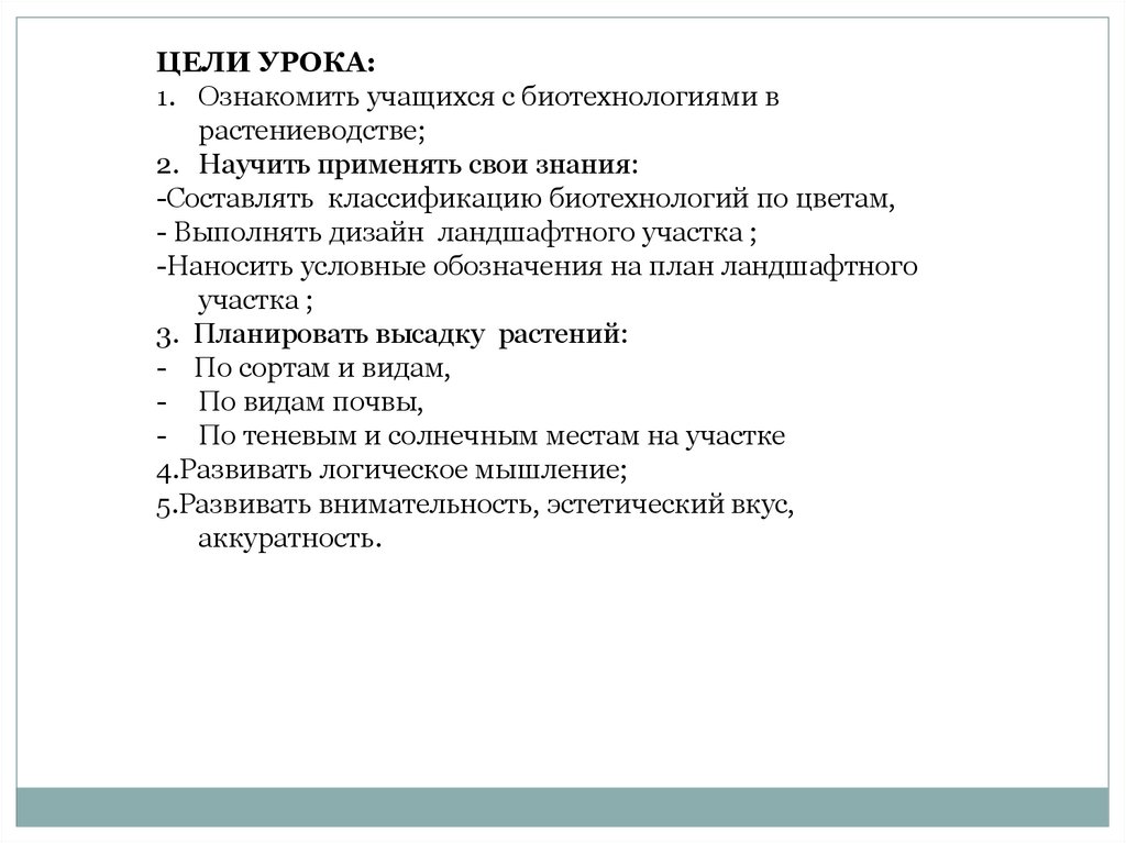 ЦЕЛИ УРОКА:1. Ознакомить учащихся с биотехнологиями в
