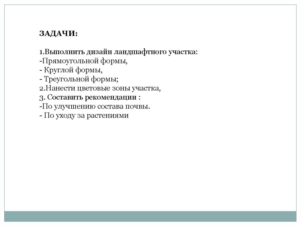 ЗАДАЧИ:1.Выполнить дизайн ландшафтного участка: