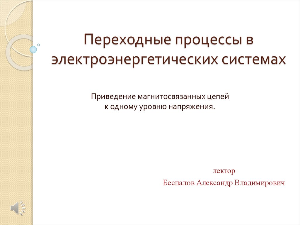 Переходные процессы в электроэнергетических системах. Приведение магнитосвязанных цепей к одному уровню напряжения