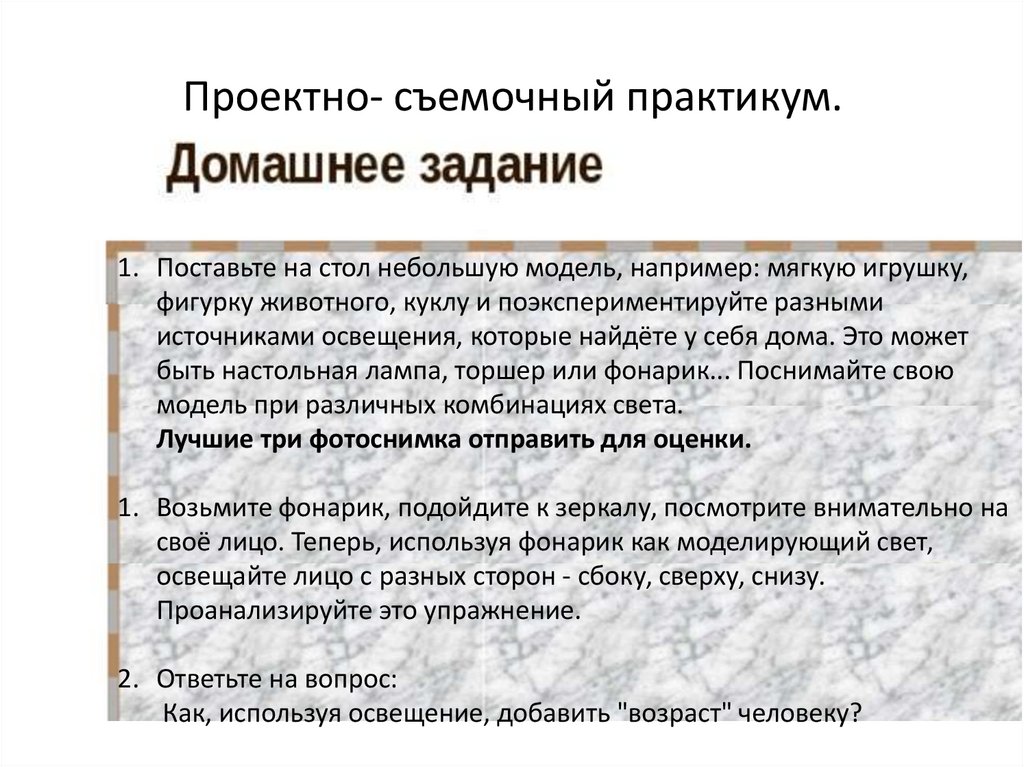 Проектно- съемочный практикум.1. Поставьте на стол небольшую модель, например: мягкую игрушку,