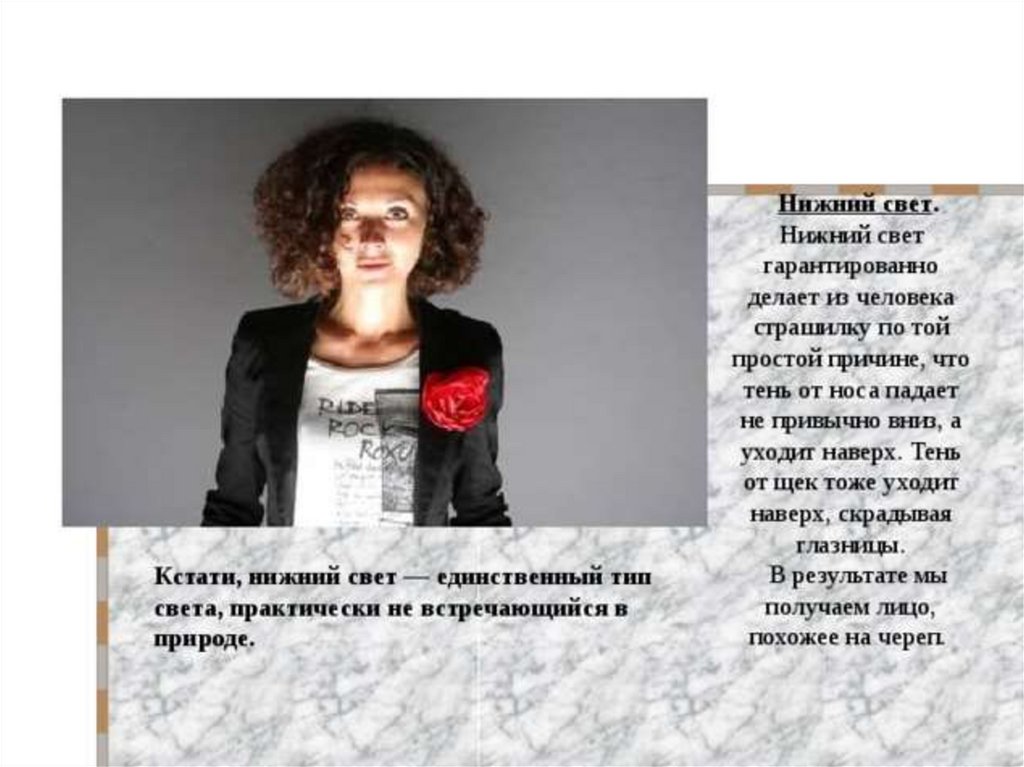 освещайте лицо с разных сторон - сбоку, сверху, снизу.