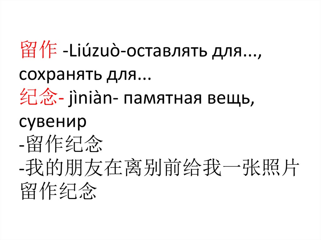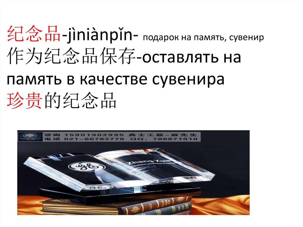 纪念品-jìniànpǐn- подарок на память, сувенир作为纪念品保存-оставлять на