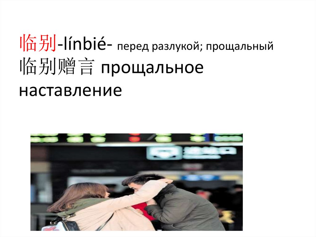 临别-línbié- перед разлукой; прощальный临别赠言 прощальное