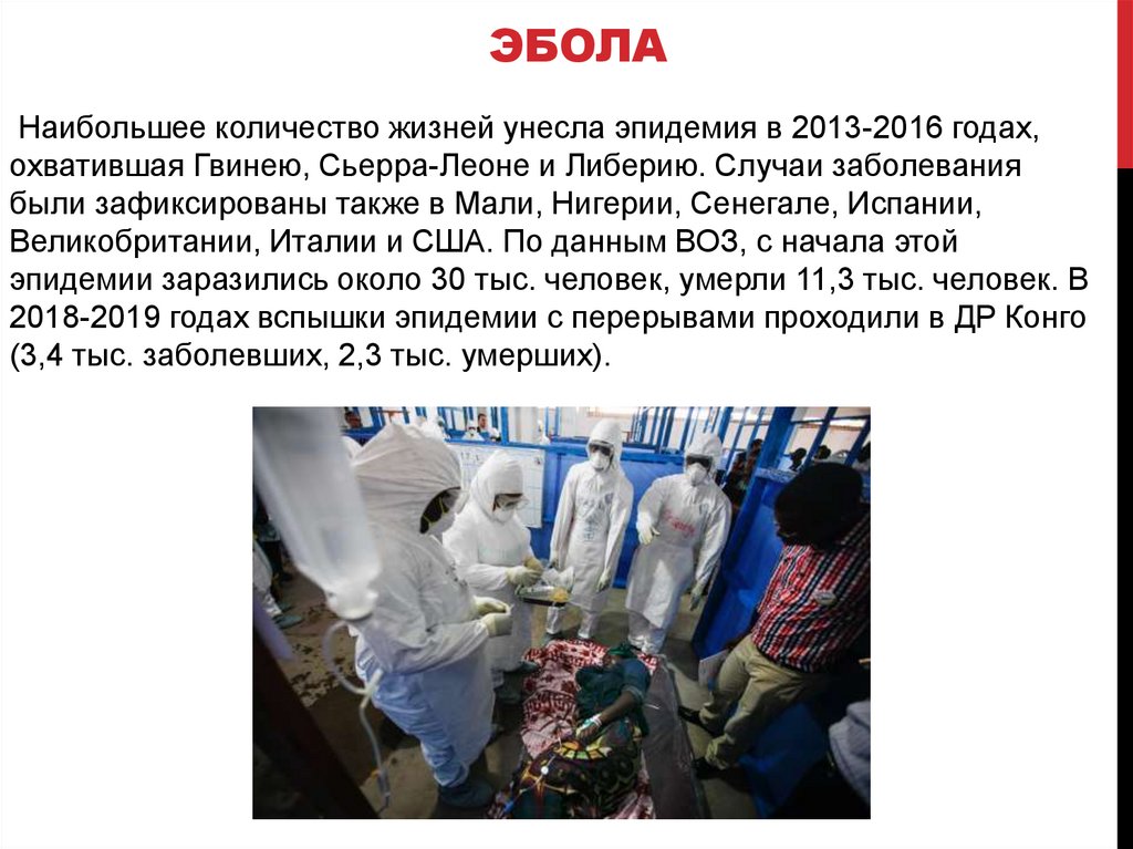 ЭБОЛАНаибольшее количество жизней унесла эпидемия в 2013-2016 годах,