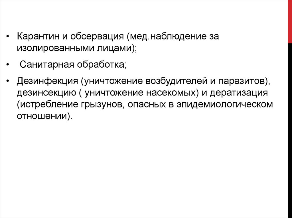 • Карантин и обсервация (мед.наблюдение заизолированными лицами);