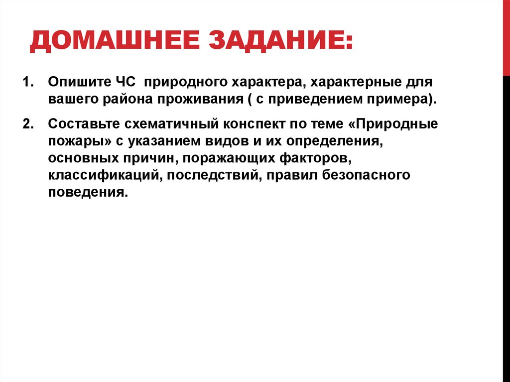 ДОМАШНЕЕ ЗАДАНИЕ:1. Опишите ЧС природного характера, характерные для