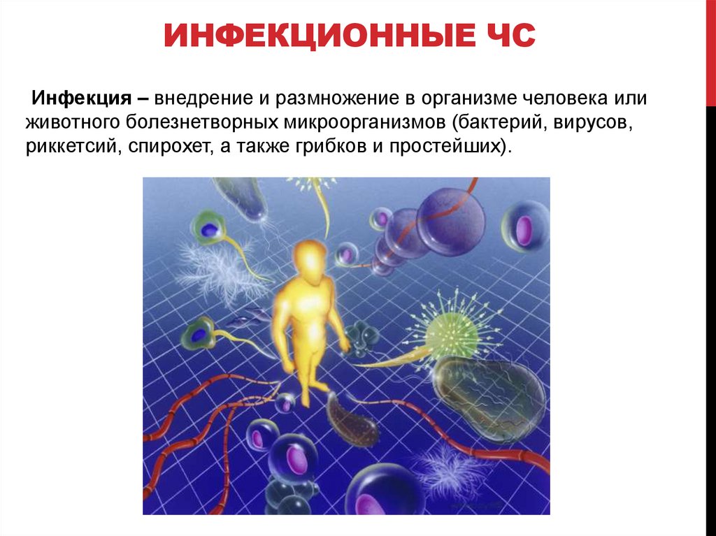 ИНФЕКЦИОННЫЕ ЧСИнфекция – внедрение и размножение в организме человека или