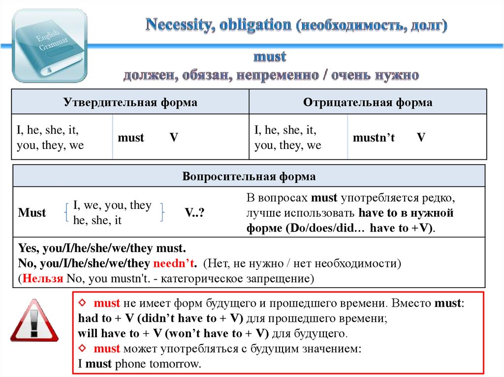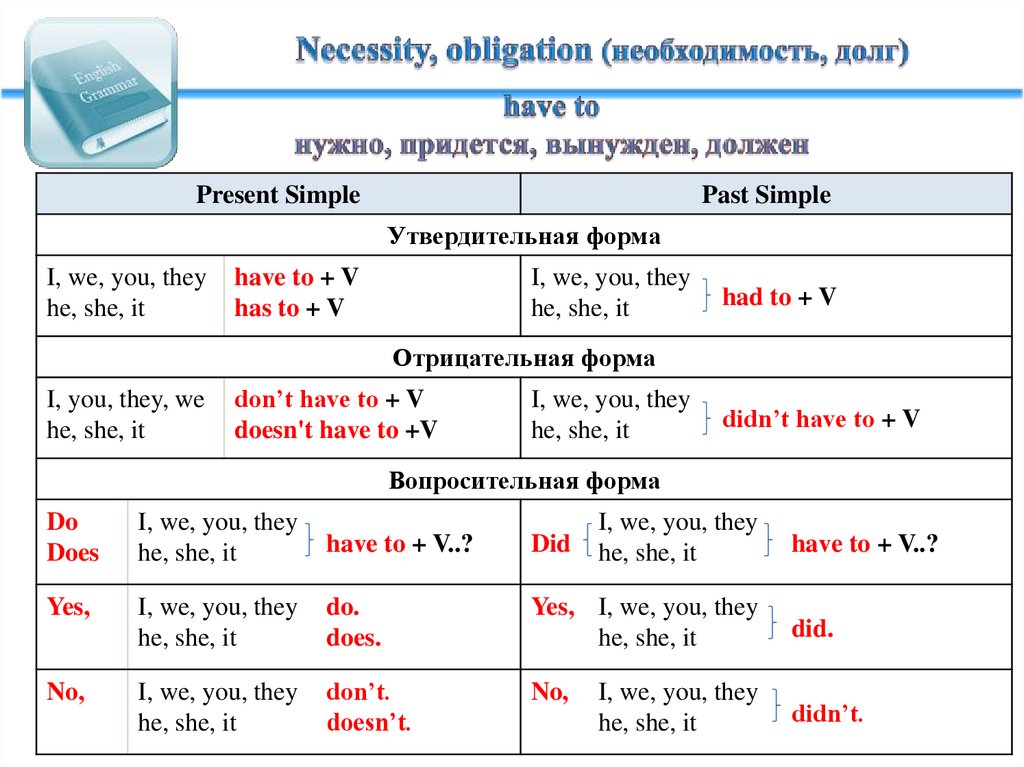 had to + V (didn’t have to + V) для прошедшего времени;