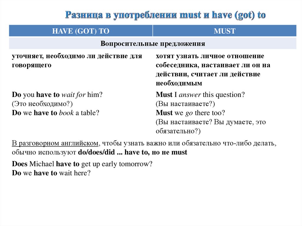 have to употребляется в разговорной и неофициальной письменной