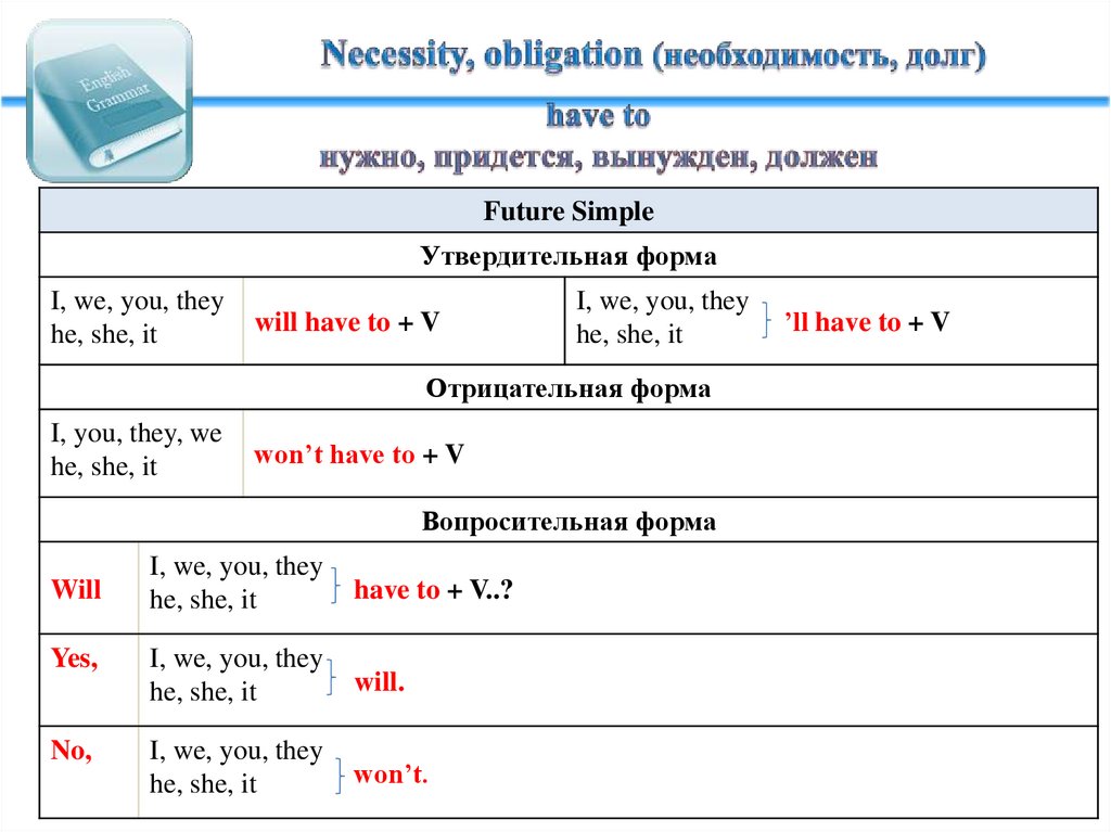 will have to + V (won’t have to + V) для будущего.