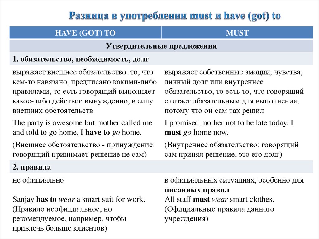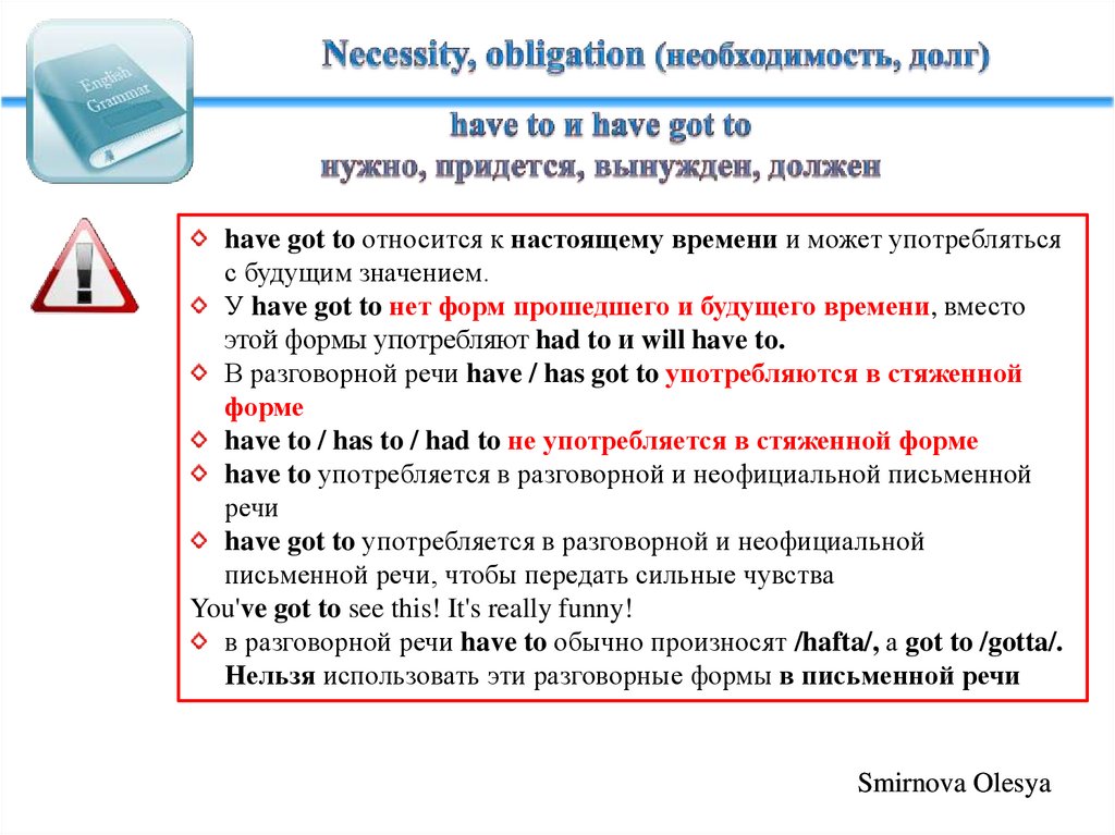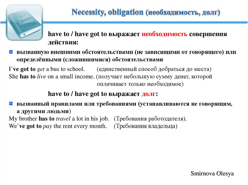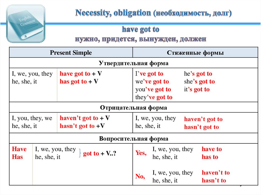 have to / have got to выражает необходимость совершениядействия:
