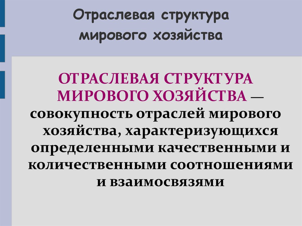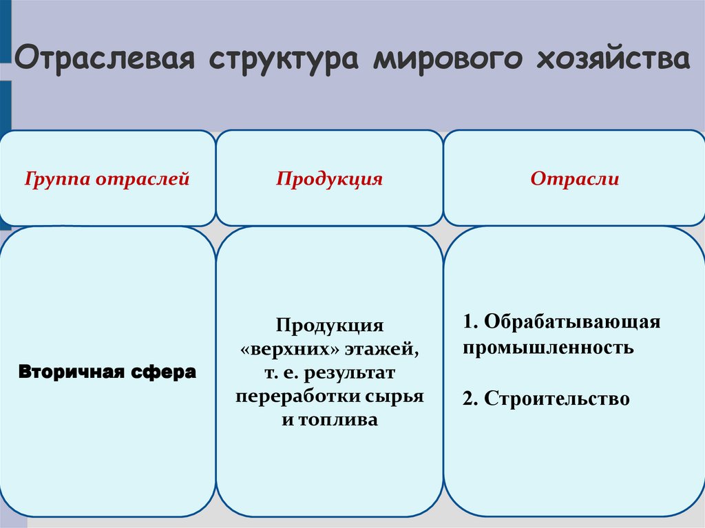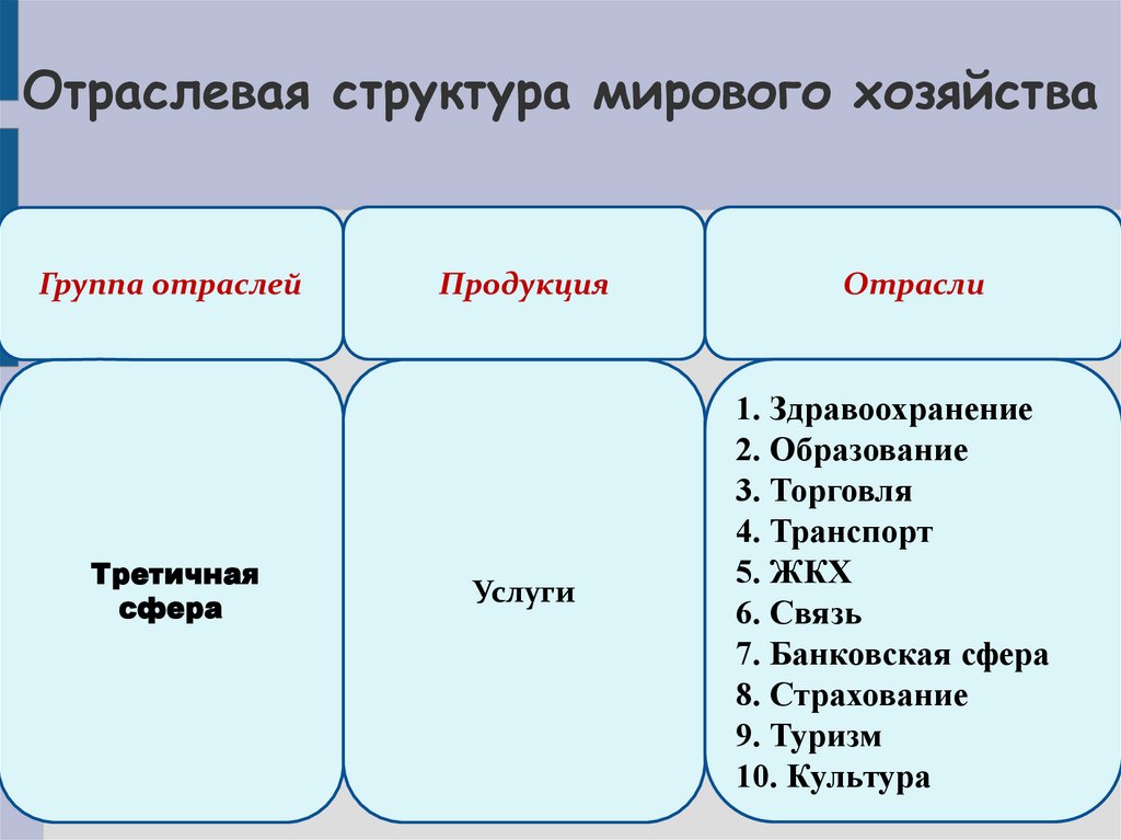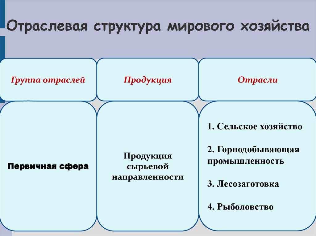 Отраслевая структура мирового хозяйстваГруппа отраслей
