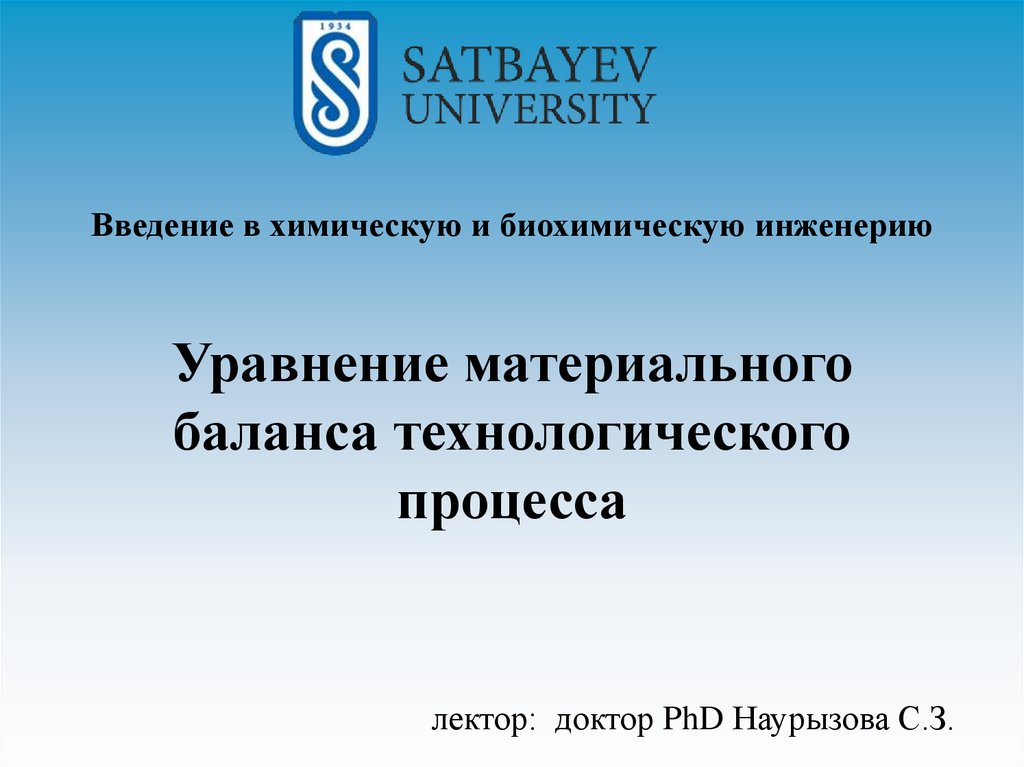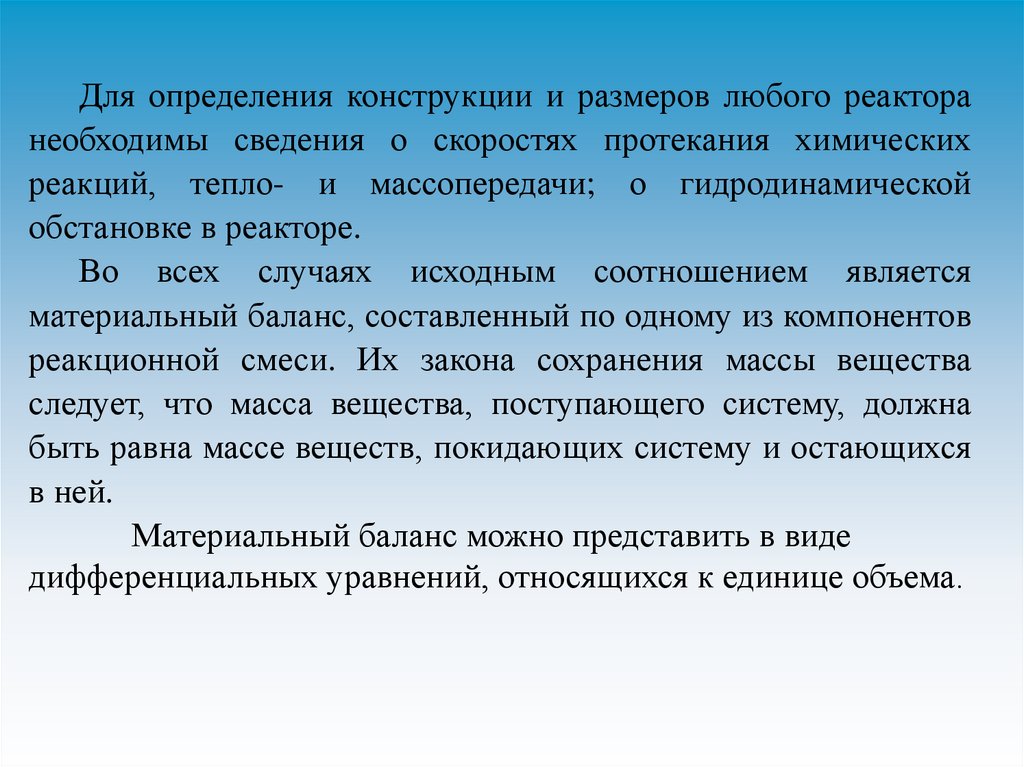 Введение в химическую и биохимическую инженериюУравнение материального