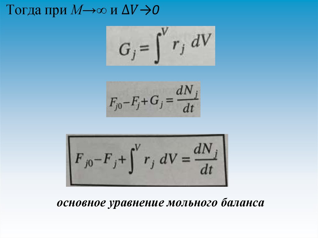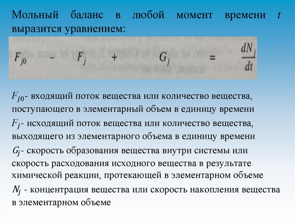 Мольный баланс в любойвыразится уравнением: